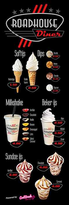 Vanille, aardbei, banaan, chocolade, sinaasappel, latte macchiato, salted caramel